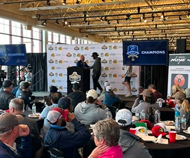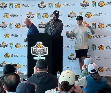 Patrick Queen at the 2023 Bassmaster Classic where I secured him over 10K worth of fishing gear.