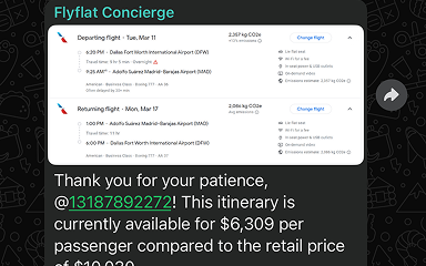Our quoted price for ArDarius Washington’s flight to Madrid was $6,309 (retails for $10,030).